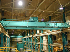 重機ye jin qizhong ji是制依靠沿廠房軌道方向的縱向移動、小車的橫向移動和吊鉤的升降運動來進行工作。適用于金屬冶煉車間,符合JB/T7688.1-95及JB/T7688.15-95標準的用于吊運熔融金屬的專用起重機。
